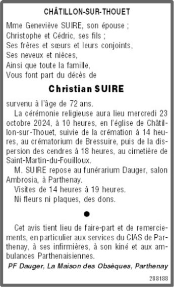 Cet espace « condoléances » est dédié à la mémoire de Monsieur Christian SUIRE.