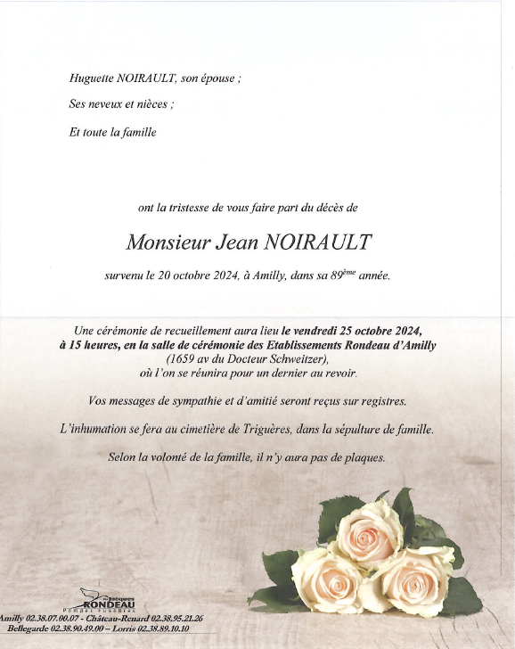 Cet espace « condoléances » est dédié à la mémoire de Monsieur Jean NOIRAULT.