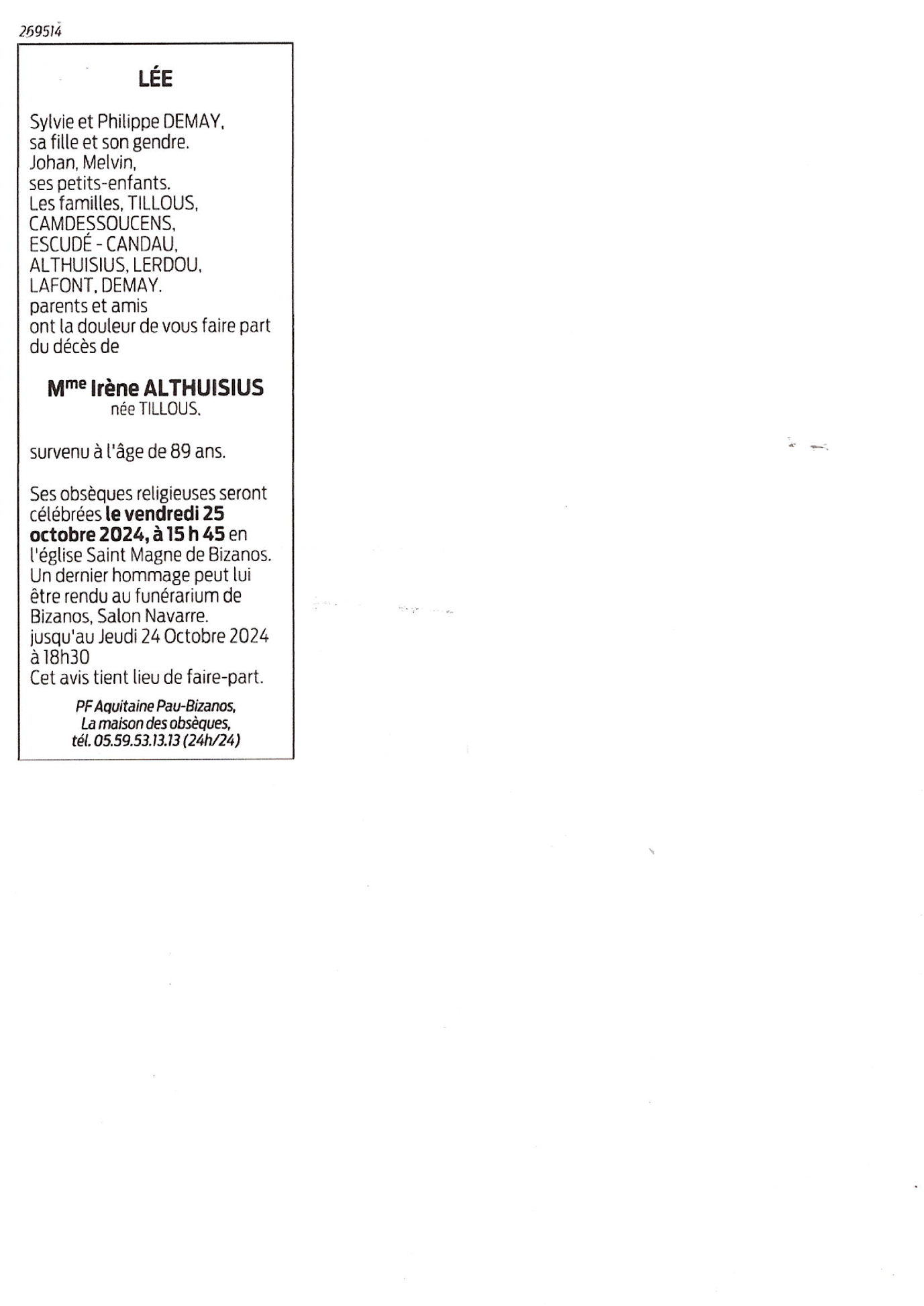 Annonce nécrologique