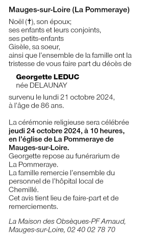 Cet espace « condoléances » est dédié à la mémoire de Madame Georgette LEDUC née DELAUNAY.