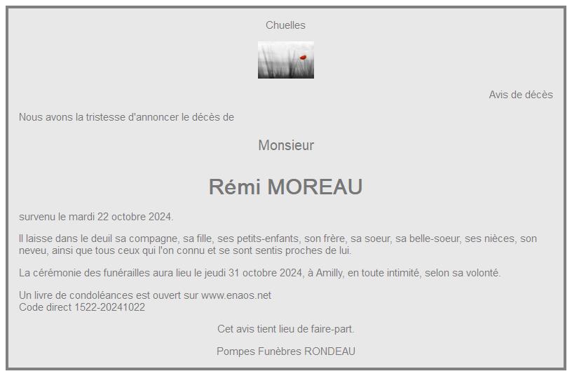 Cet espace « condoléances » est dédié à la mémoire de Monsieur Rémi MOREAU.