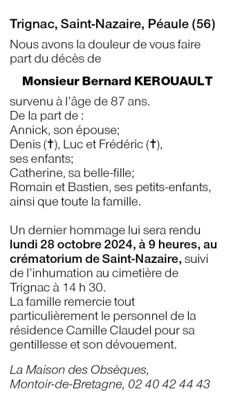 Cet espace « condoléances » est dédié à la mémoire de Monsieur Bernard KEROUAULT.