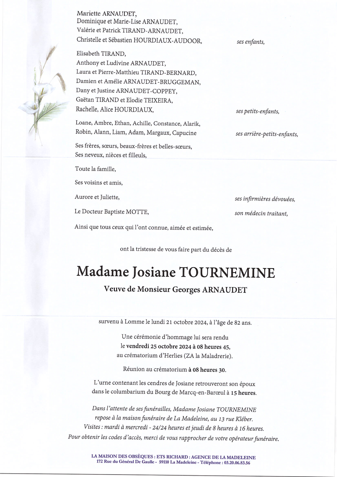 de Madame Josiane ARNAUDET née TOURNEMINE
