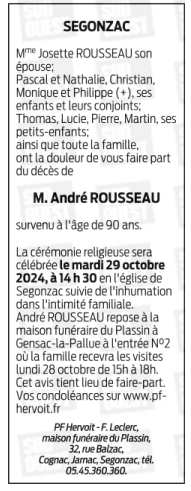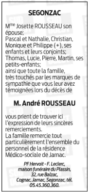 Cet espace « condoléances » est dédié à la mémoire de Monsieur André ROUSSEAU.