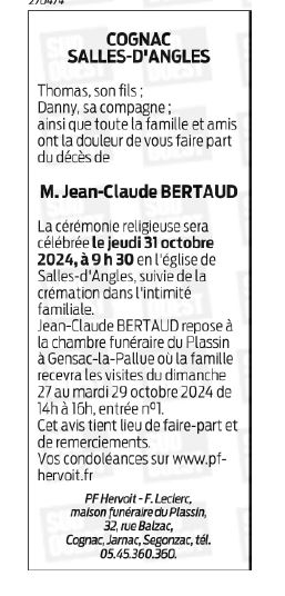Décédé à Cherac (17610) le jeudi 24 octobre 2024
