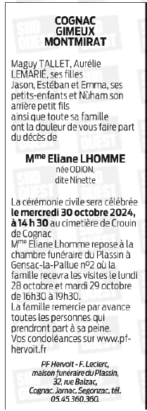 de Madame Eliane LHOMME née ODION