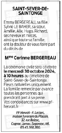 Décédée à Saint-Martial-de-Vitaterne (17500) le samedi 26 octobre 2024