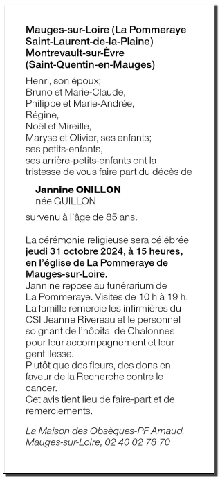 de Madame Jannine ONILLON née GUILLON