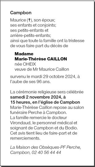de Madame MARIE-THERESE CAILLON née OHEIX