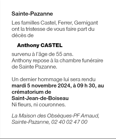 Cet espace « condoléances » est dédié à la mémoire de Monsieur Anthony CASTEL.