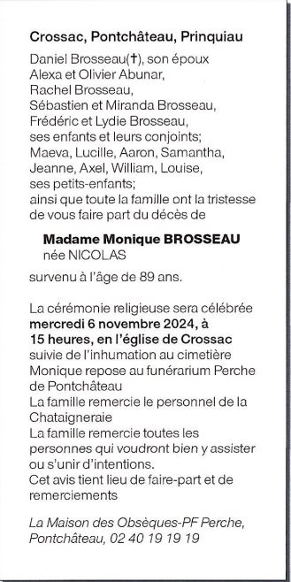 de Madame Monique BROSSEAU née NICOLAS
