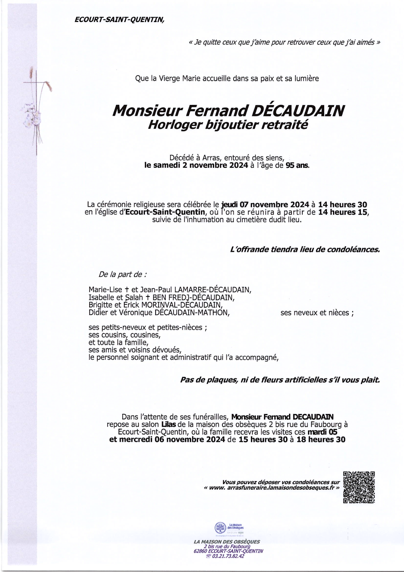 de Monsieur Fernand DECAUDAIN