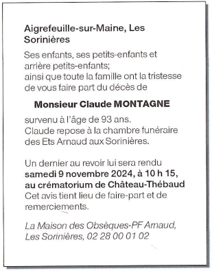 Cet espace « condoléances » est dédié à la mémoire de Monsieur Claude MONTAGNE.