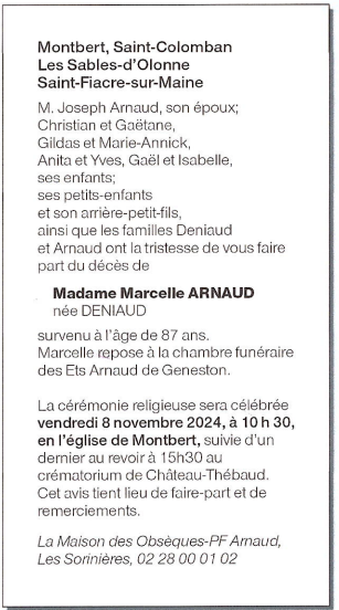 de Madame Marcelle ARNAUD née DENIAUD