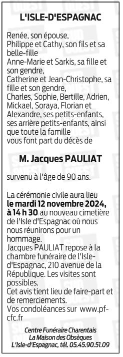 Cet espace « condoléances » est dédié à la mémoire de Monsieur Jacques PAULIAT.