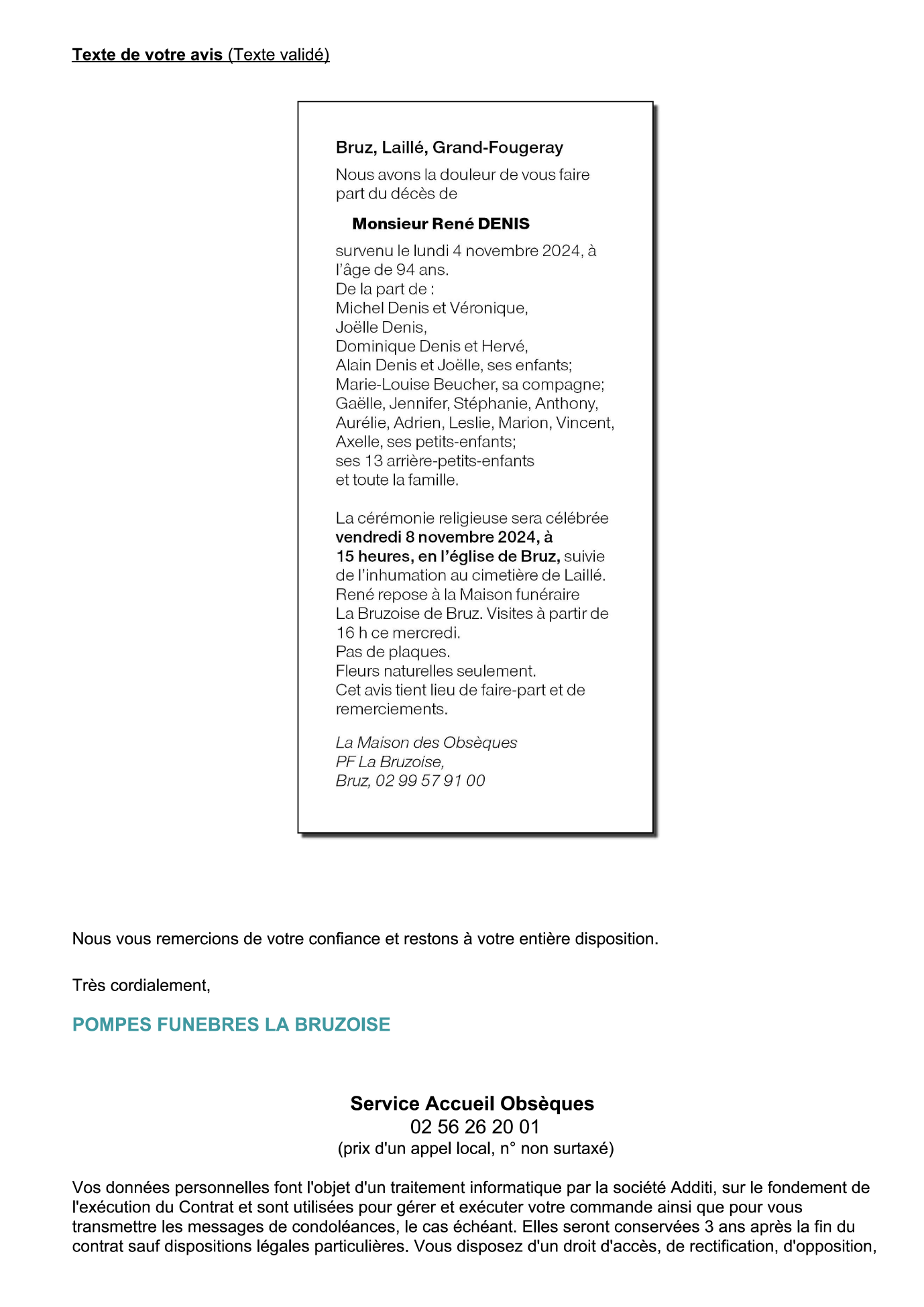Cet espace « condoléances » est dédié à la mémoire de Monsieur René DENIS.