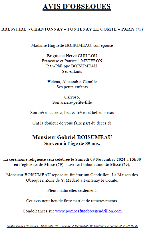 Cet espace « condoléances » est dédié à la mémoire de Monsieur Gabriel BOISUMEAU.