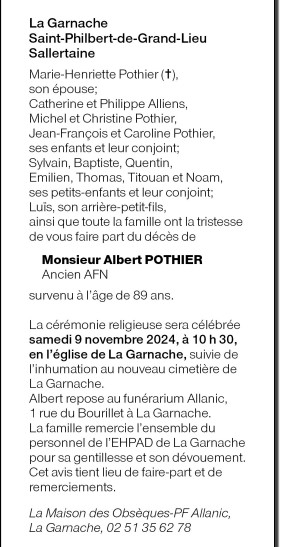 Cet espace « condoléances » est dédié à la mémoire de Monsieur Albert POTHIER.