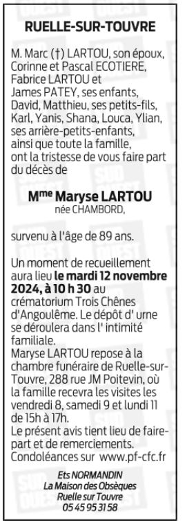 de Madame Maryse LARTOU née CHAMBORD