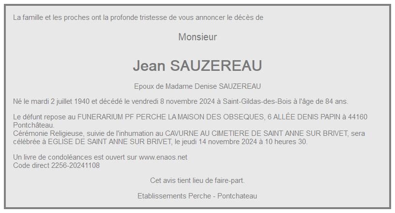Cet espace « condoléances » est dédié à la mémoire de Monsieur Jean SAUZEREAU.