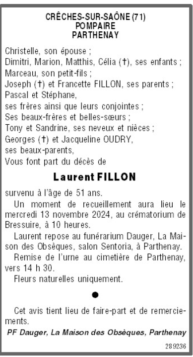 Cet espace « condoléances » est dédié à la mémoire de Monsieur Laurent FILLON.
