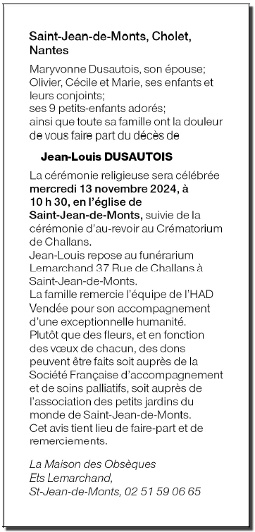 de Monsieur Jean-Louis DUSAUTOIS