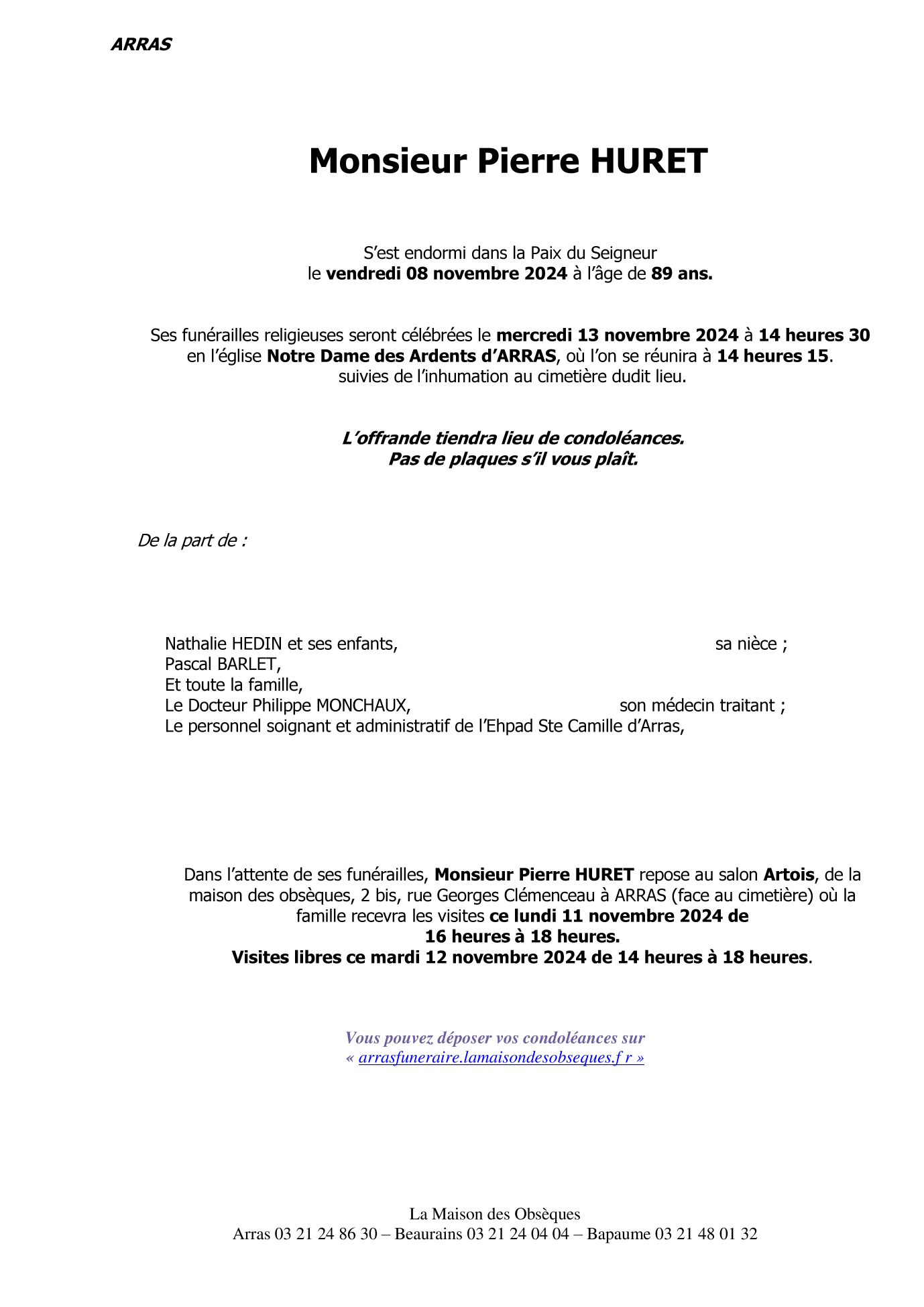 Décédé à Arras (62000) le vendredi 8 novembre 2024