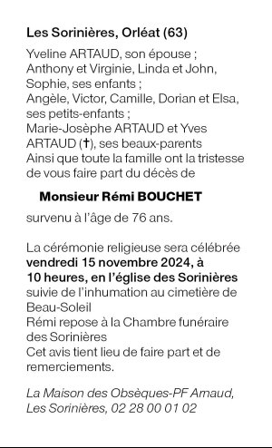 Cet espace « condoléances » est dédié à la mémoire de Monsieur Rémi BOUCHET.