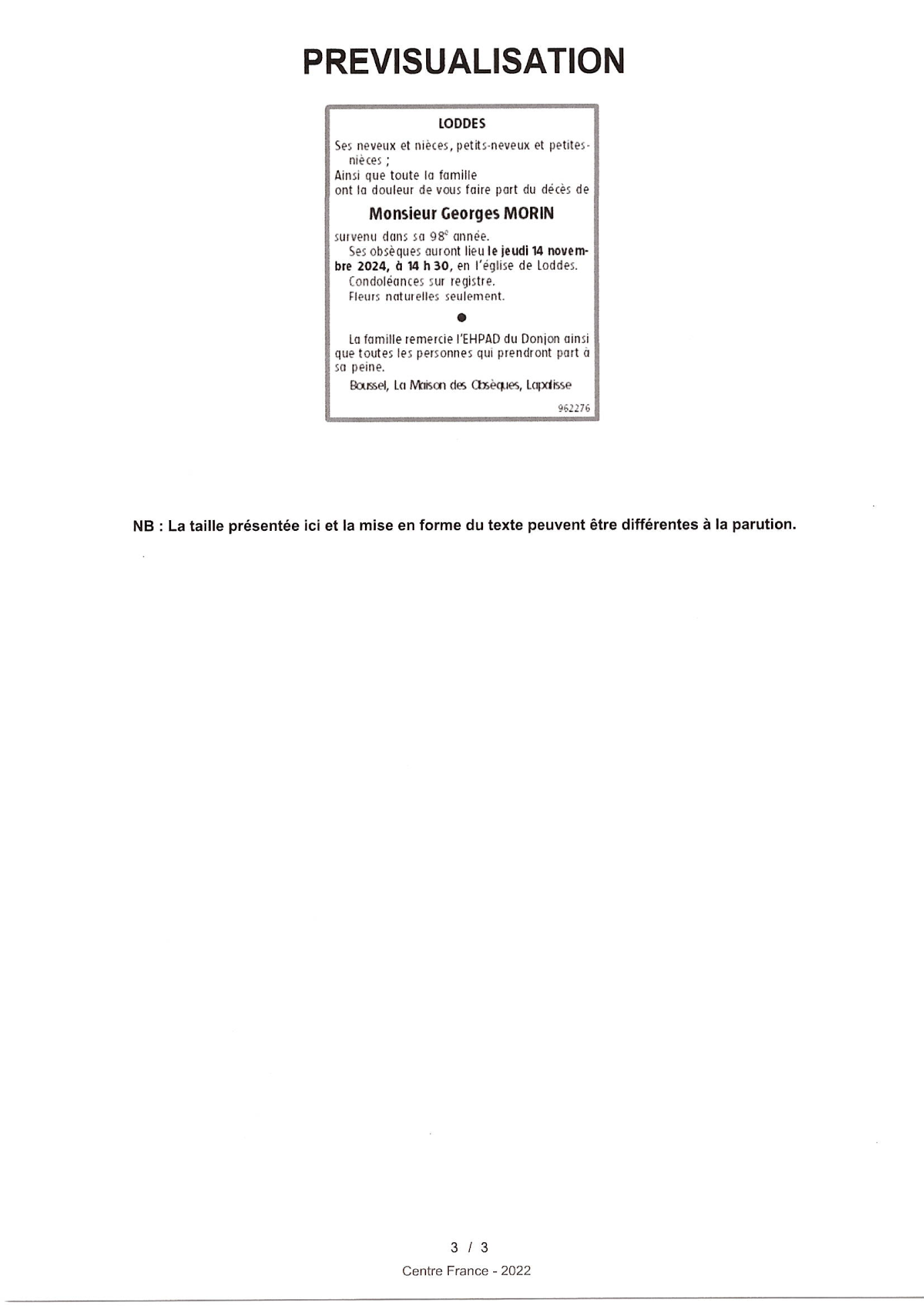 Cet espace « condoléances » est dédié à la mémoire de Monsieur Georges MORIN.