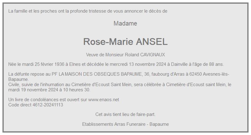de Madame Rose-Marie CAVIGNAUX née ANSEL