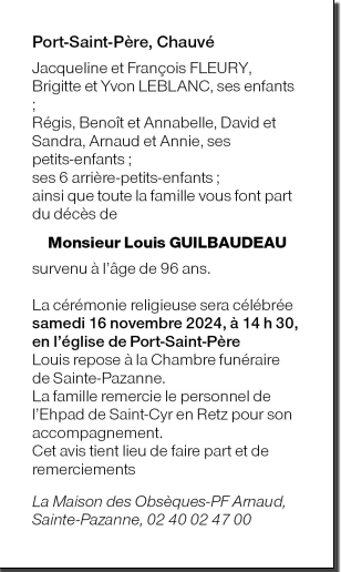 Cet espace « condoléances » est dédié à la mémoire de Monsieur Louis GUILBAUDEAU.