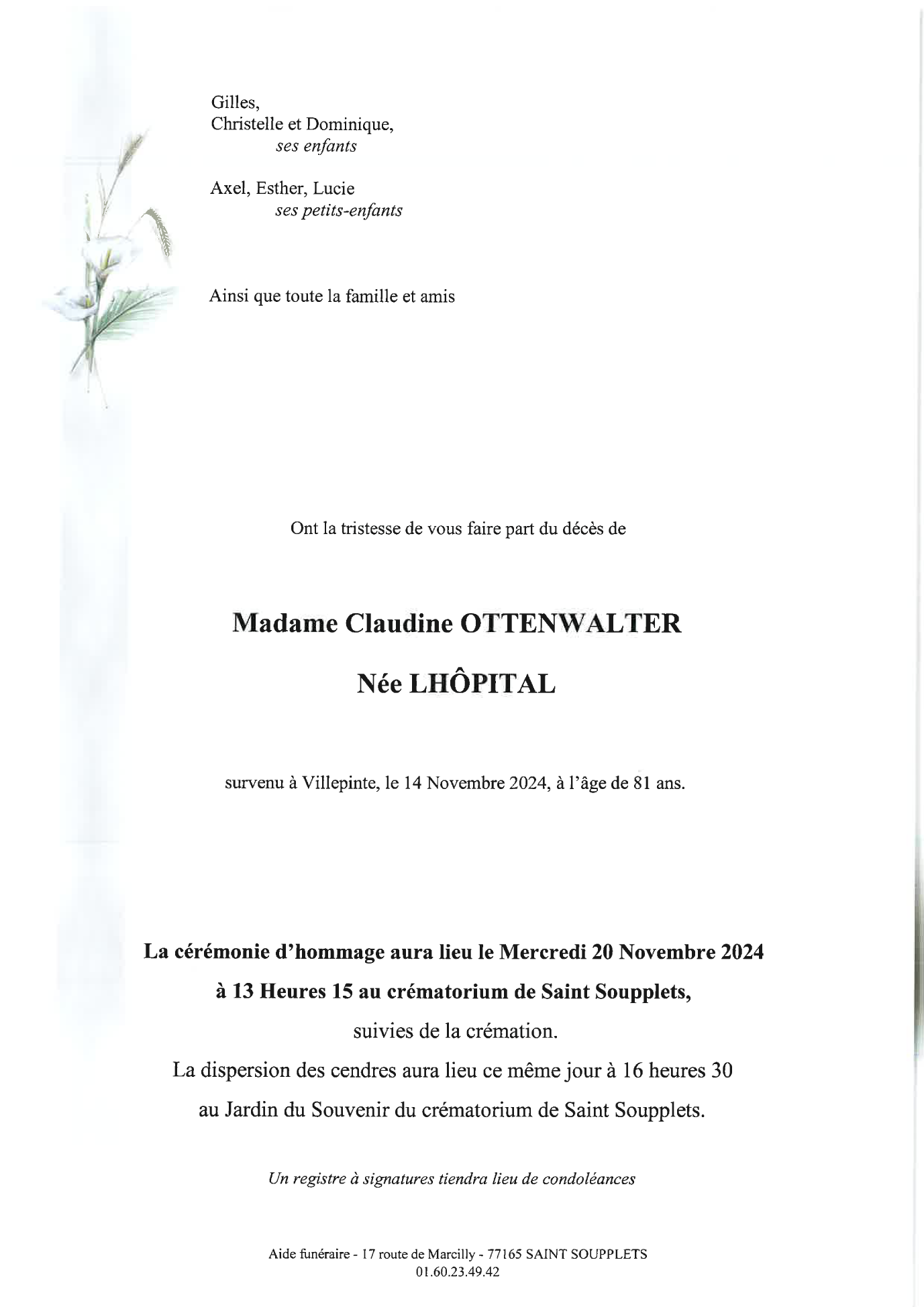 de Madame Claudine OTTENWALTER née LHÔPITAL