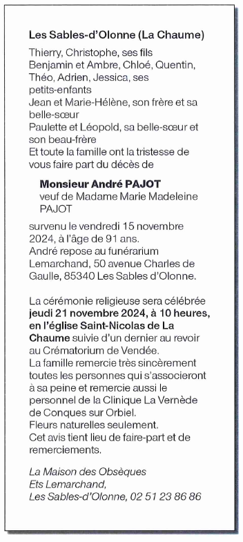 Cet espace « condoléances » est dédié à la mémoire de Monsieur André PAJOT.