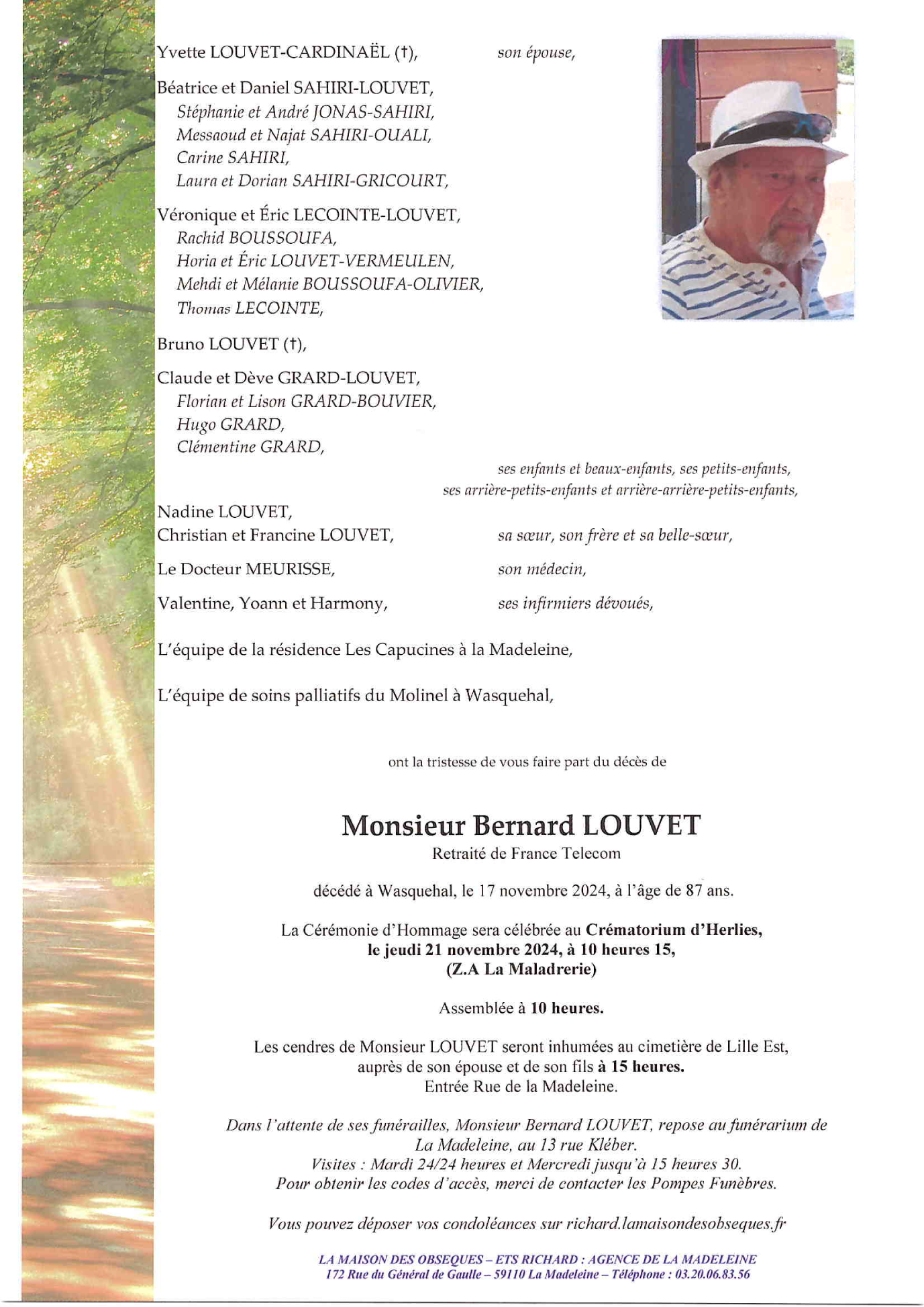 Cet espace « condoléances » est dédié à la mémoire de Monsieur Bernard LOUVET.