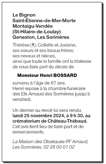 Cet espace « condoléances » est dédié à la mémoire de Monsieur Henri BOSSARD.