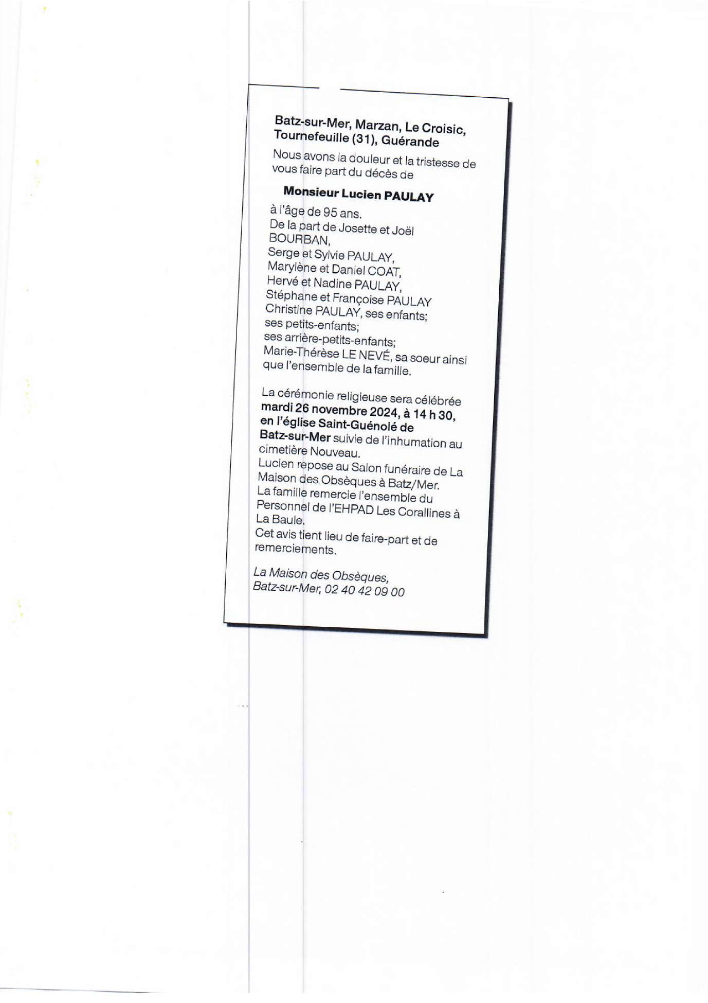 de Monsieur Lucien PAULAY