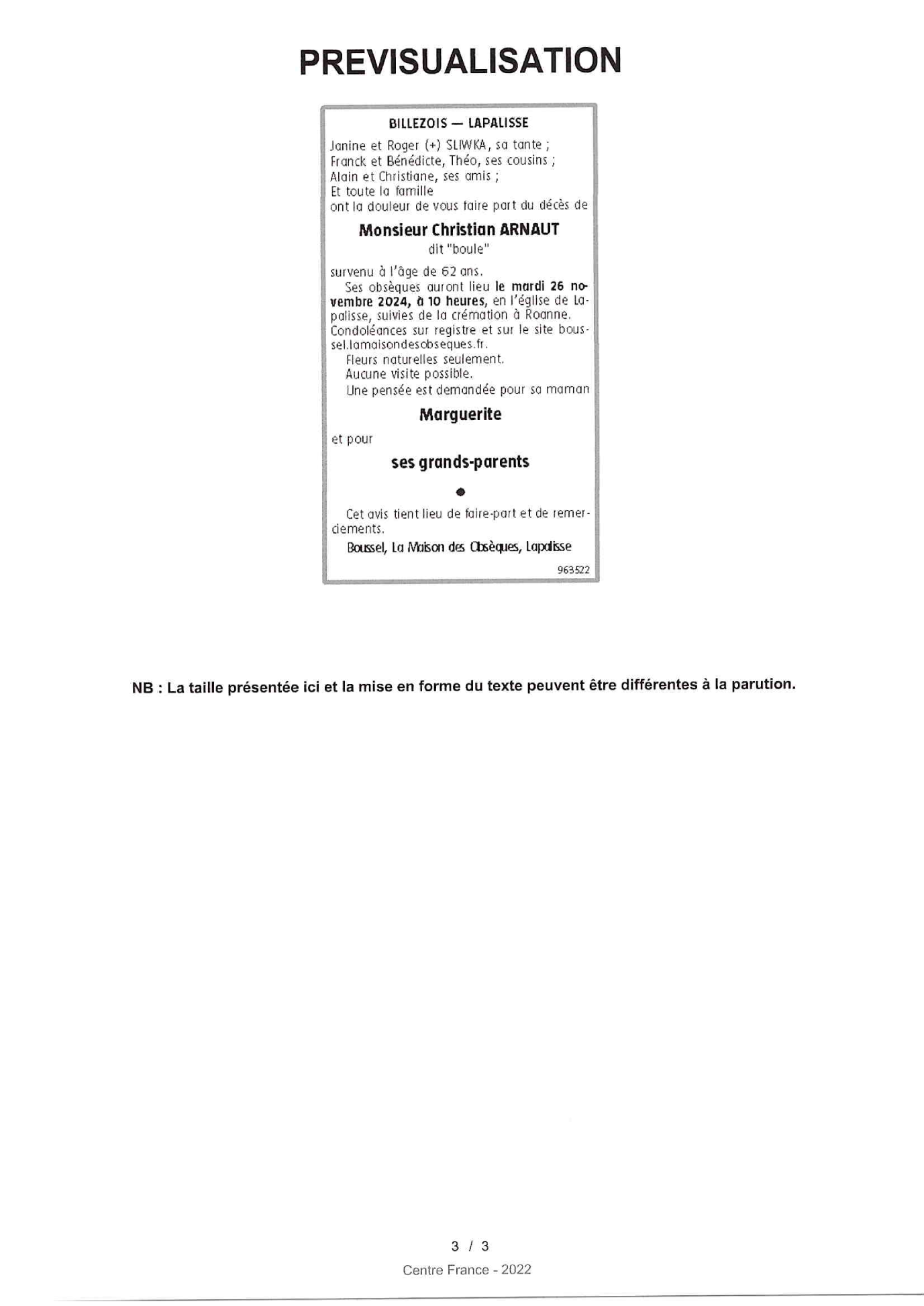 Cet espace « condoléances » est dédié à la mémoire de Monsieur Christian ARNAUT.