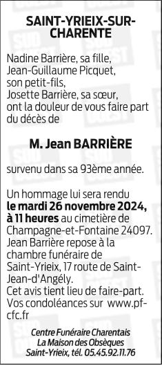 Cet espace « condoléances » est dédié à la mémoire de Monsieur Jean BARRIERE.