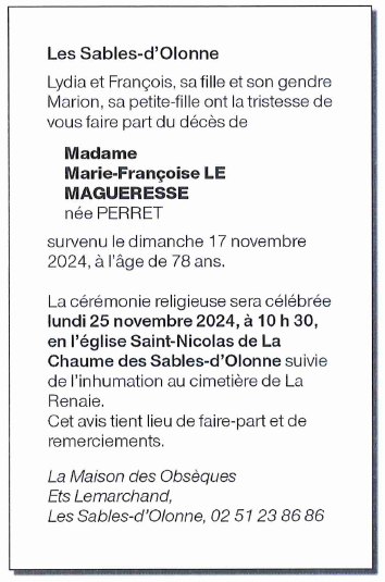 de Madame Marie-Françoise LE MAGUERESSE née PERRET