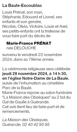 de Madame Marie-France PRÉNAT née DELOUCHE