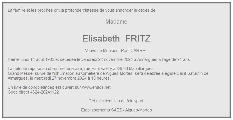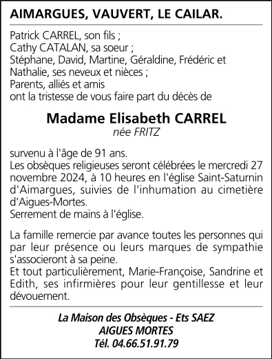 de Madame Elisabeth CARREL née FRITZ