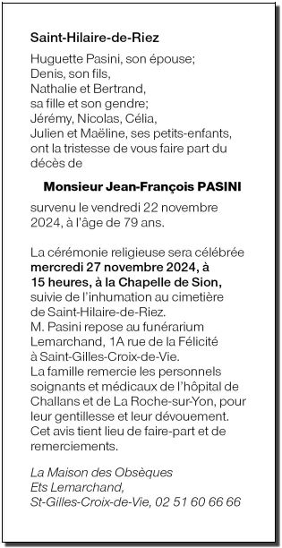 de Monsieur Jean François PASINI