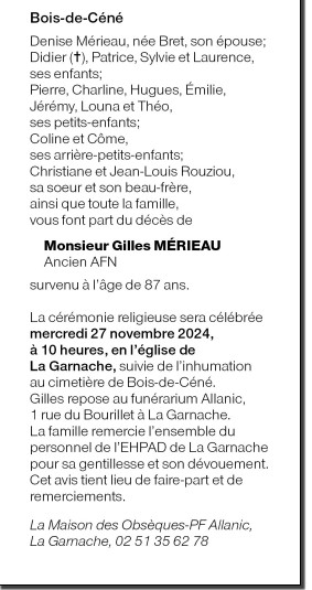 Cet espace « condoléances » est dédié à la mémoire de Monsieur Gilles MÉRIEAU.
