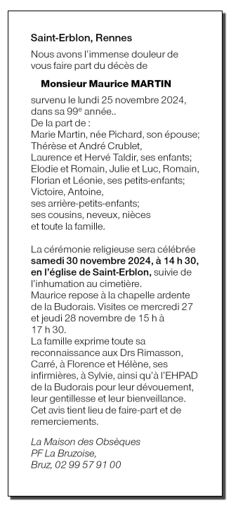 de Monsieur Maurice MARTIN