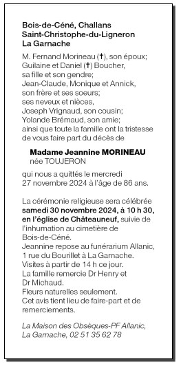 de Madame Marie-Thérèse MORINEAU née TOUJERON