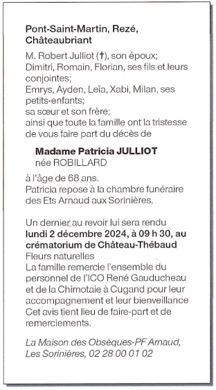de Madame Patricia JULLIOT née ROBILLARD