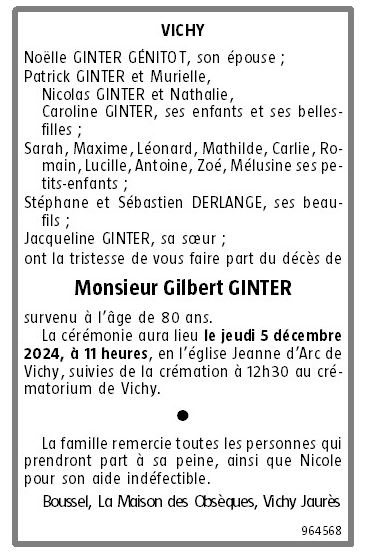 de Monsieur Gilbert GINTER