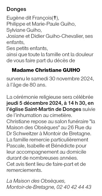 Cet espace « condoléances » est dédié à la mémoire de Madame Christiane GUIHO née BLANDIN.