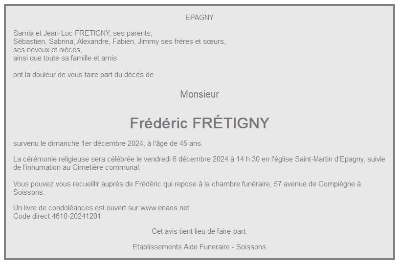 Cet espace « condoléances » est dédié à la mémoire de Monsieur Frédéric FRÉTIGNY.