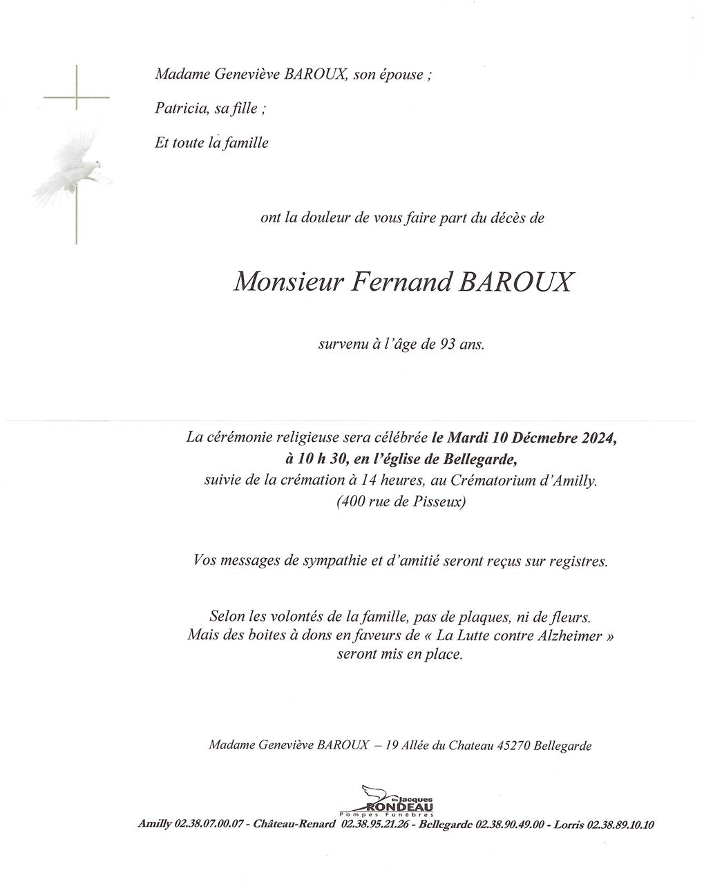 Cet espace « condoléances » est dédié à la mémoire de Monsieur Fernand BAROUX.